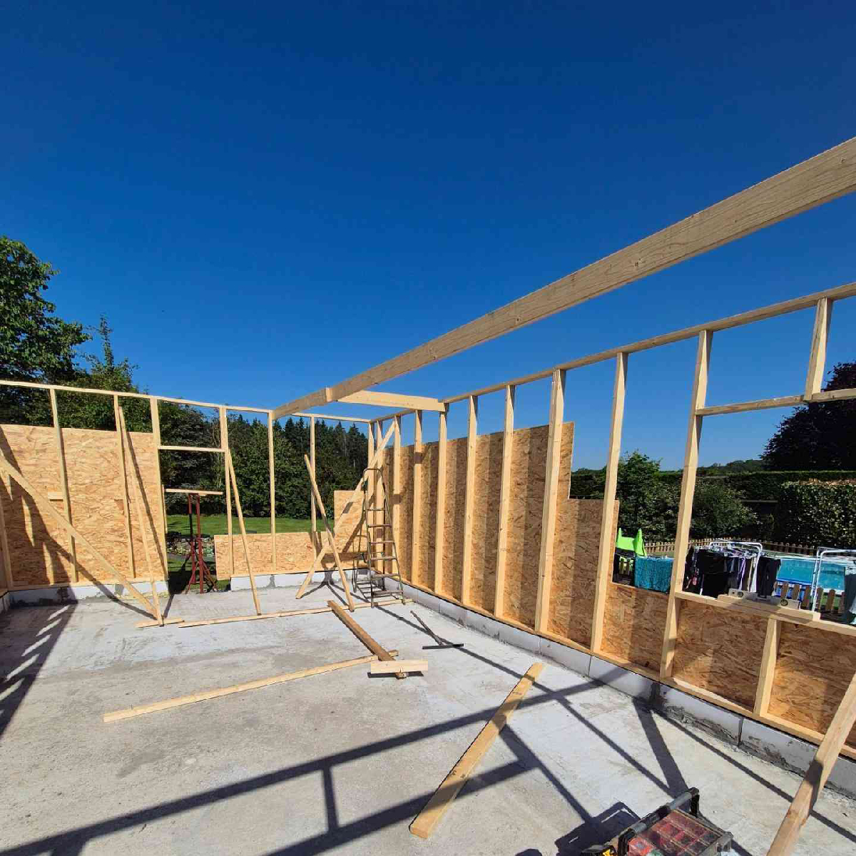 Chez YD Menuiserie & Construction, on met notre savoir-faire au service de vos projets de construction ossature bois à Jemeppe-sur-Sambre et partout en Belgique. Créée il y a 2 ans, notre entreprise s’appuie sur l’expérience de plus de 6 ans de son gérant dans le métier de constructeur ossature bois. Notre équipe travaille avec précision et vous accompagne dans la réalisation de maisons clé sur porte, d’annexes, d’extensions et de transformations en bois. Que ce soit pour une nouvelle construction, une surélévation de toiture ou la modification structurelle de votre habitation, nous avançons avec méthode en construisant le squelette en bois, les parois, les éléments porteurs et les finitions adaptées.
